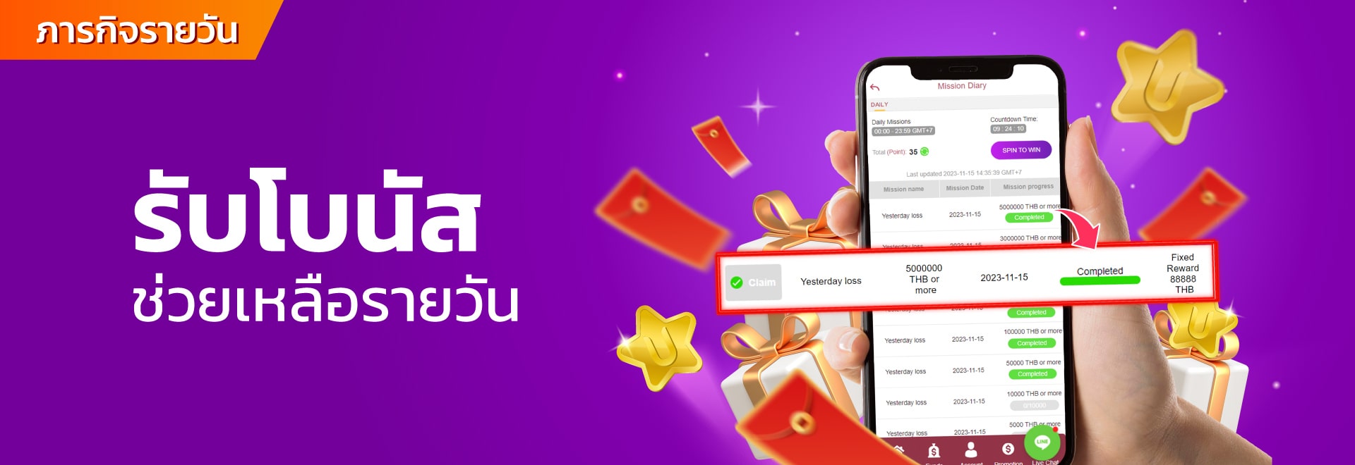 - โบนัสพิเศษสำหรับเกมที่กำหนด